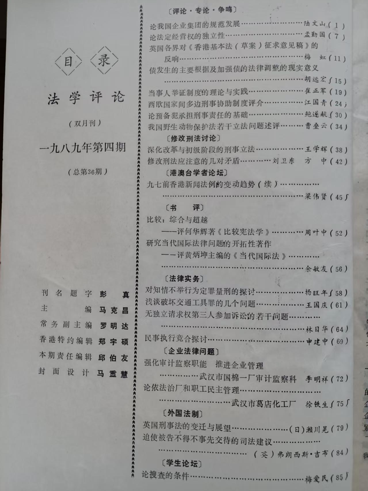 我作为一位半路出家的法学硕士研究生,能得到中国当代著名法学家、中国国际法学一代宗师、中国环境法学开拓者和奠基人韩德培先生的亲睐和指导,在《法学评论》发表专论,是我莫大的荣幸。